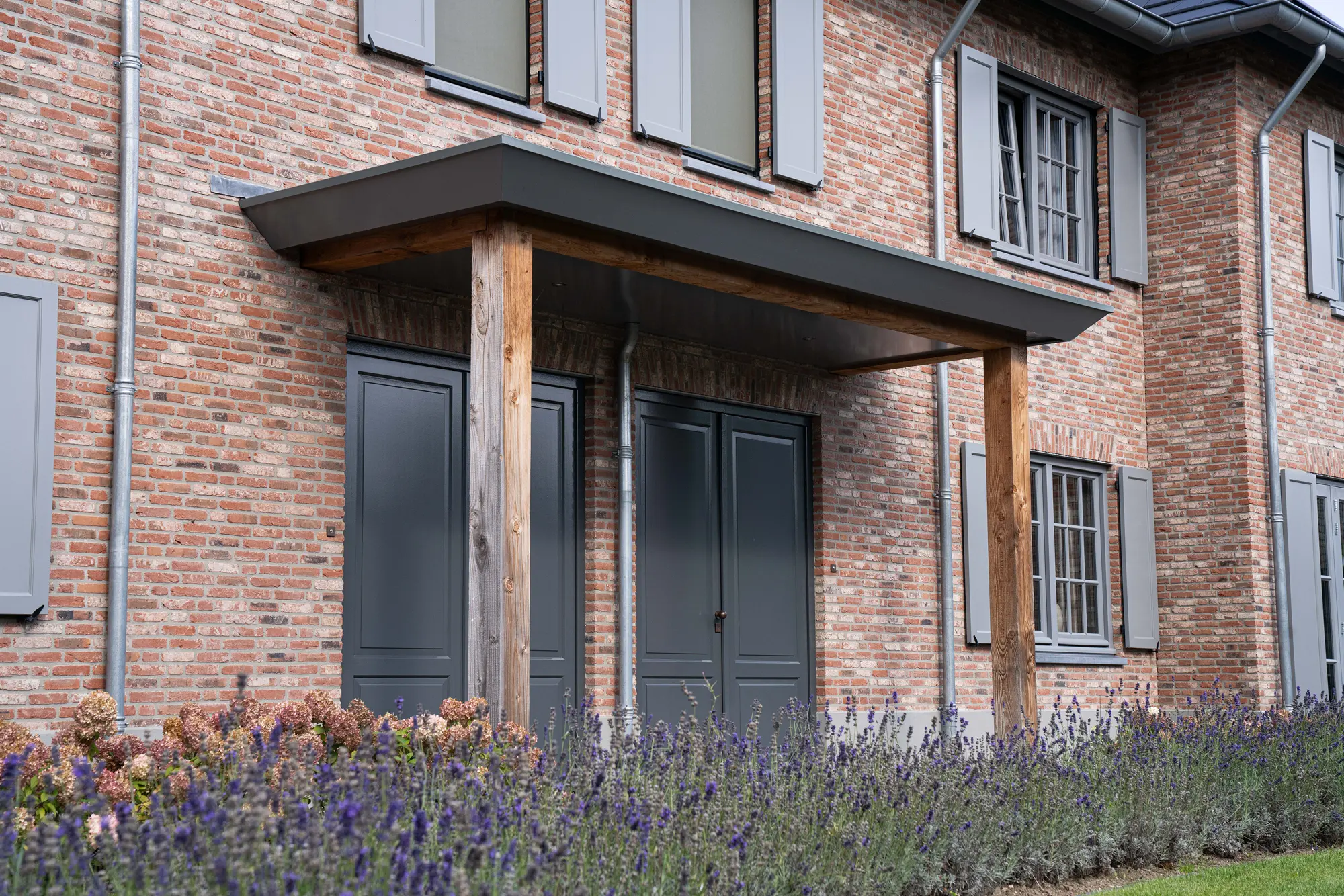 De overkapping bij de voordeur en de klassieke details in de gevel geven de woning een warme en uitnodigende uitstraling, terwijl de moderne afwerking binnen zorgt voor een eigentijdse woonervaring.